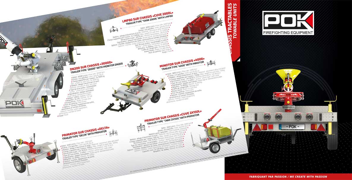 POK® a développé une large gamme de châssis tractables. Sur ces derniers, nous pouvons monter tout type de monitor d’un débit de 3 000 à 30 000 litres par minute. Nos châssis tractables, en alliage d’aluminium, sont réalisés par des techniciens chaudronniers hautement qualifiés. Ces modèles sont parfaitement adaptés, entre autres, à la lutte contre l’incendie dans les secteurs de la pétrochimie. Parmi nos matériels immédiatement disponibles, POK propose actuellement les deux produits présentés, ci-dessous.