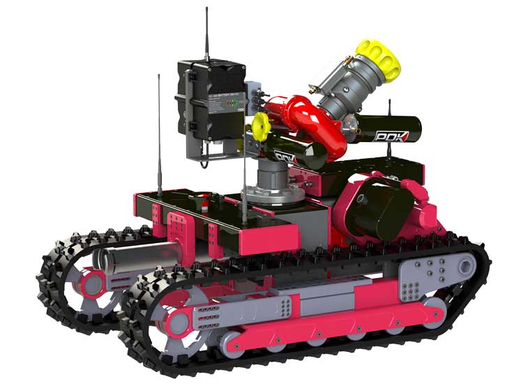 Fort de son expérience dans la fabrication de matériel de lutte contre l’incendie, POK® a voulu créer un robot permettant d’accomplir des prouesses techniques tout en restant extrêmement maniable : le JUPITER est né.